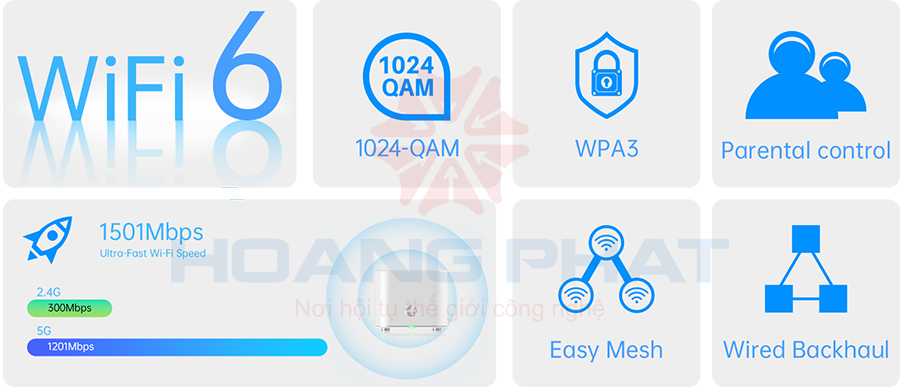 Wi-Fi 6 (IEEE802.11ax) mang lại bước tiến vượt bậc về tốc độ và dung lượng tổng thể, đưa kết nối Wi-Fi của bạn lên một tầm cao mới, đồng thời tương thích ngược với các chuẩn Wi-Fi trước đây như IEEE802.11a/b/g/n/ac.