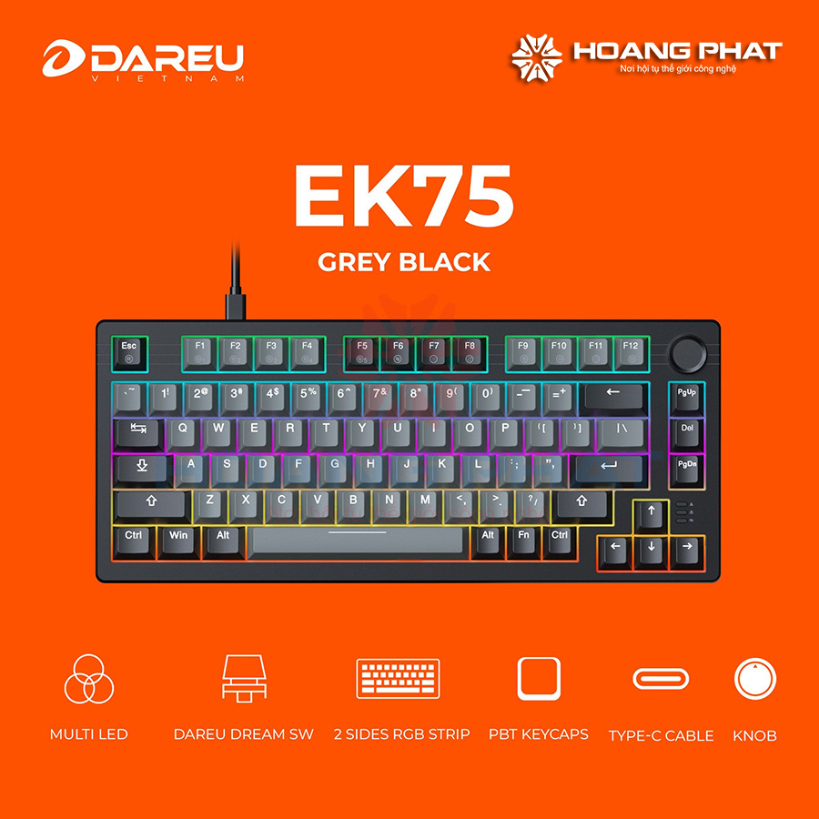 Bàn phím cơ DareU EK75 Grey Black Dream switch sở hữu thiết kế siêu nhỏ gọn với layout 75%, 81 phím bấm hỗ trợ tốt mọi nhu cầu sử dụng ở bất kỳ đâu khi cần. Đặc biệt, nhờ vào phối màu basic trắng đen được kết hợp hài hòa tạo điều kiện thuận lợi khi lựa chọn chuột máy tính, tai nghe gaming để Setup các góc máy làm việc và chơi game đẹp mắt. Hứa hẹn đây sẽ là một trong những mẫu bàn phím DareU rất đáng trải nghiệm.
