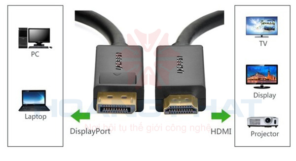 - Cáp chuyển Displayport to HDMI dài 2m Ugreen 10202 thường có trên card màn hình PC, Mainbroad, các dòng laptop của (Dell inspection, HP, Lenovo Thinkpad...).