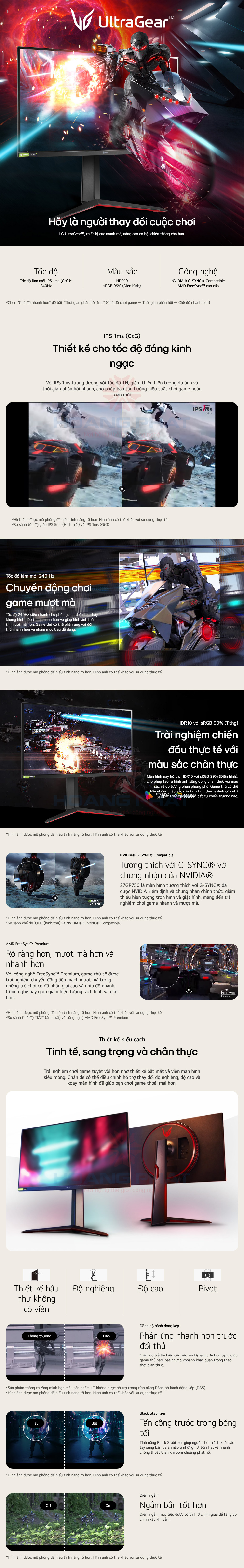 Màn hình chơi game UltraGear™ Full HD 240Hz IPS 1ms (GtG) 27" tương thích với NVIDIA® G-SYNC®