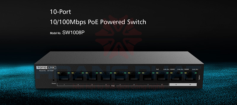 Với 8 cổng PoE tốc độ 100Mbps và 2 cổng Uplink tốc độ Gigabit, SW1008P có công suất nguồn ra mỗi cổng đạt tối đa 30W, tổng công suất tối đa của thiết bị đạt 99W